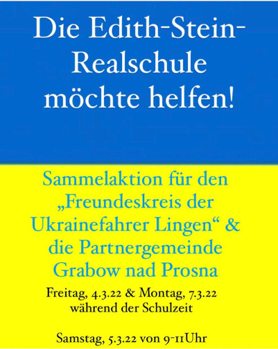 Vom 04.03. bis zum 07.03.2022 veranstaltete die Edith-Stein-Realschule eine Spendensammlung...